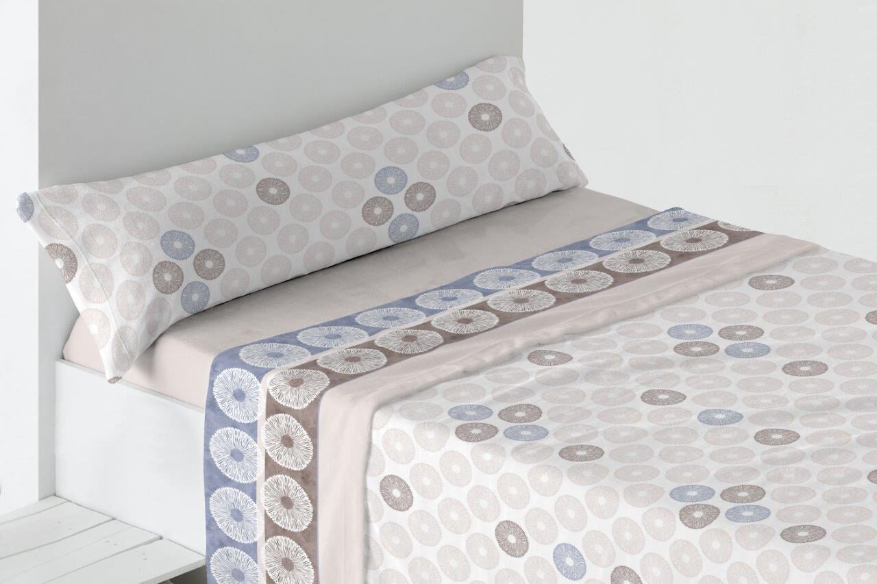 Juego de sábanas con dibujo geométrico estampado. Confeccionado con un tejido de microfibra de poliéster con un gramaje de 220 gr/m2 y perchado a dos caras, el resultando es un tejido extremadamente cálido y muy suave al tacto, ideal para el invierno.